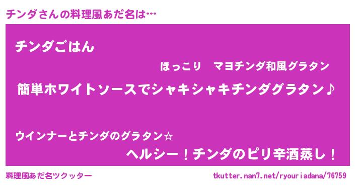 | 女子向けラノベタイトル風あだ名 | 『チンダ様がみてる』『闇のチンダ』 |
