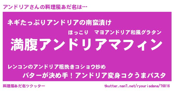 | 意味不明あだ名 | 『永久保存アンドリア』『自称アンドリア』 |