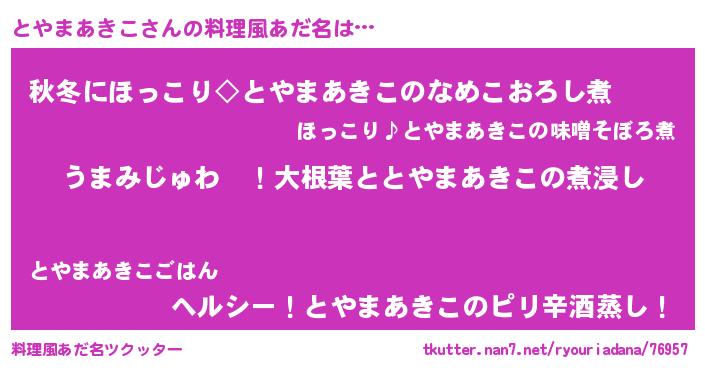 | 肩書あだ名 | 『とやまあきこ総理大臣』 |