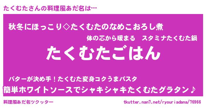 | 男性向けラノベタイトル風あだ名 | 『タクムタスレイヤー』 |