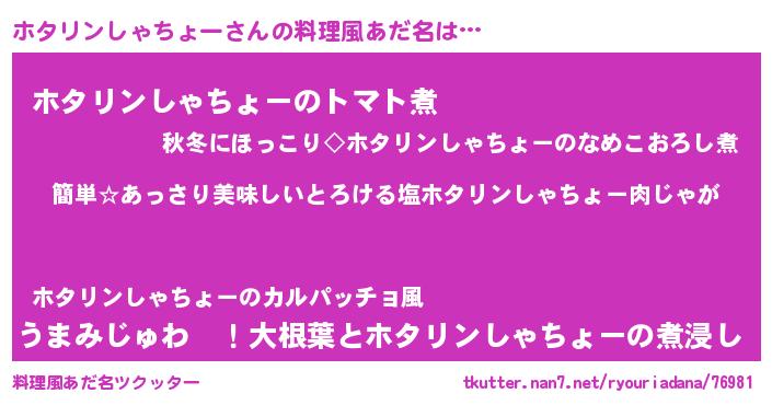 | 胡散臭い通販商品みたいなあだ名 | 『前代未聞の水素水…その名も「ホタリンしゃちょー」』 |