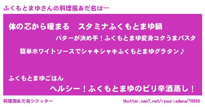 | ポケモン風あだ名 | 『ヒフクモトマユ』『フクモダネ』 |