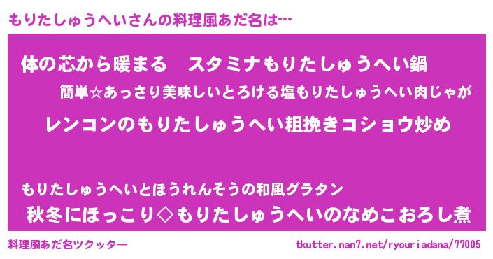 | 意味不明あだ名 | 『自称もりたしゅうへい』 |