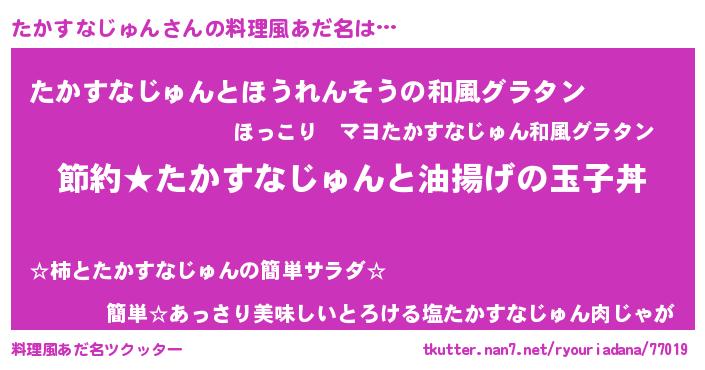 | 恥ずかしいあだ名 | 『プリティーたかすなじゅん』『たかちん』 |