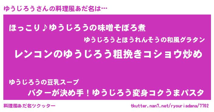 | 意味不明あだ名 | 『自称ゆうじろう』『ペロリンゆうじろう』 |