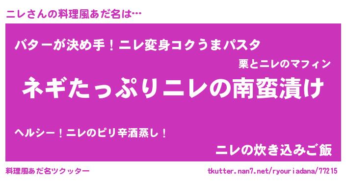 | ピコ太郎風あだ名 | 『ニコ四郎』『ニニ太郎』『ニレ次郎』 |