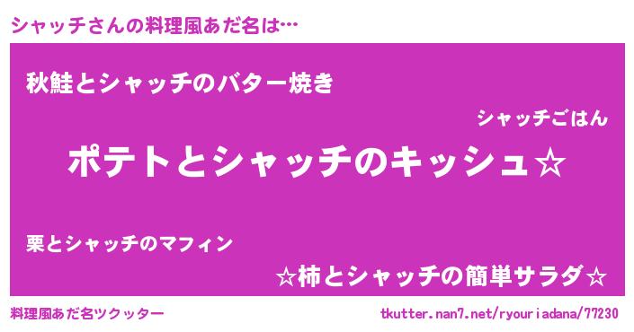 | 男性向けラノベタイトル風あだ名 | 『シャッチの嫁は女の子じゃないと思った?』 |
