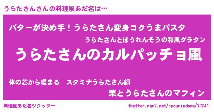 | 意味不明あだ名 | 『住所不定無職うらたさん(86歳)』 |