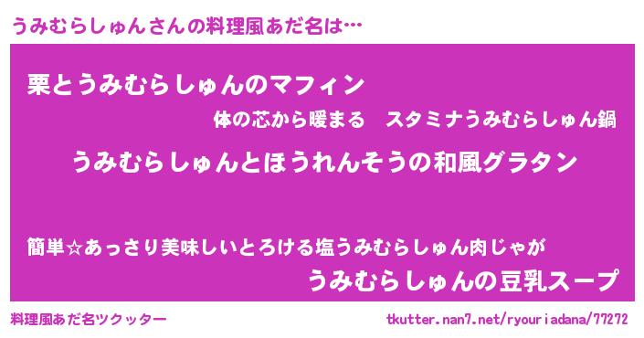 | 男性向けラノベタイトル風あだ名 | 『うみむらしゅん~年齢イコール彼女いない歴の魔法使い~』 |