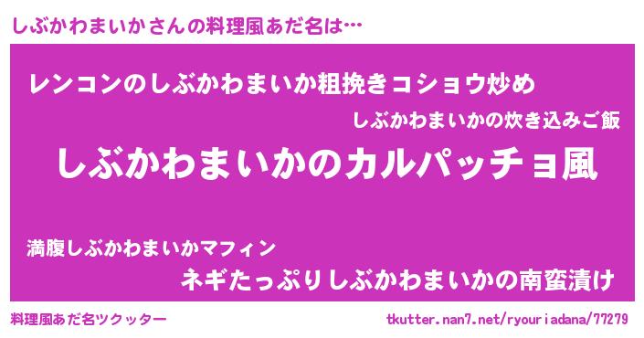 | 意味不明あだ名 | 『住所不定無職しぶかわまいか(56歳)』 |