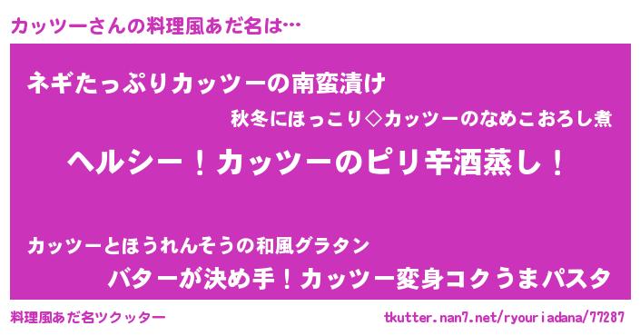 | ヒーロー風カッコイイあだ名 | 『サイバー戦士カッツー』『仮面カッダー』 |