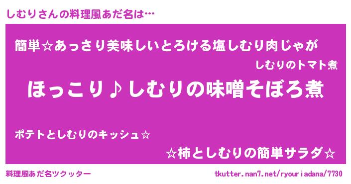 | 2回繰り返すあだ名 | 『しむしむ』『こりこり』『ちりちり』 |