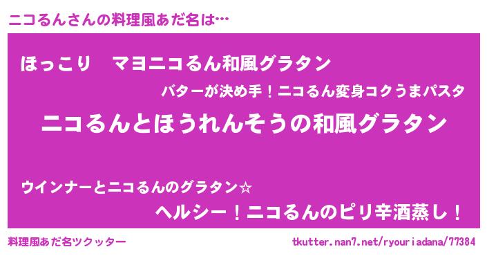 | 意味不明あだ名 | 『ニラ科ニコるん属』『自称ニコるん』 |
