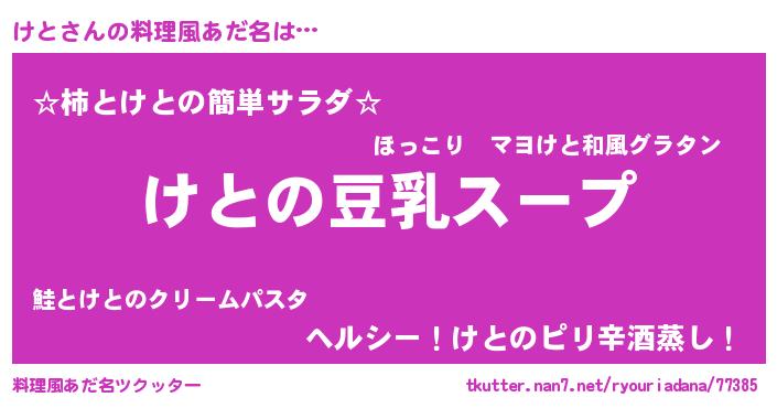 | 男性向けラノベタイトル風あだ名 | 『ダンジョンにけとを求めるのは間違っているだろうか』 |
