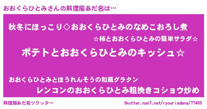 | 意味不明あだ名 | 『とにかく怪しいおおくらひとみ』 |