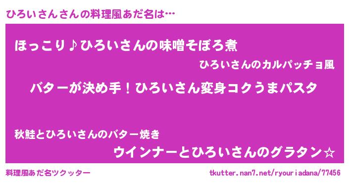 | 女子向けラノベタイトル風あだ名 | 『ひろいさん恋絵巻』 |