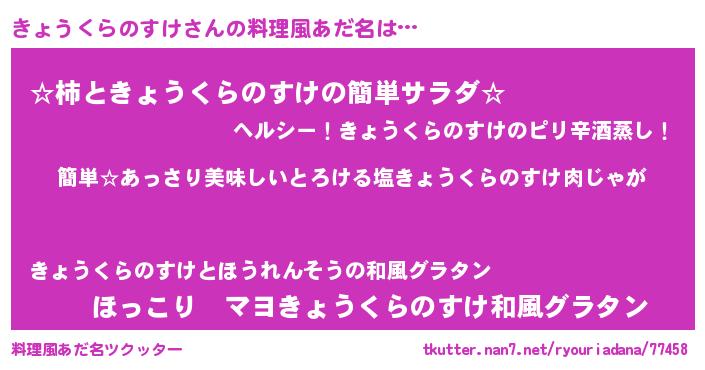 | 意味不明あだ名 | 『永久保存きょうくらのすけ』 |