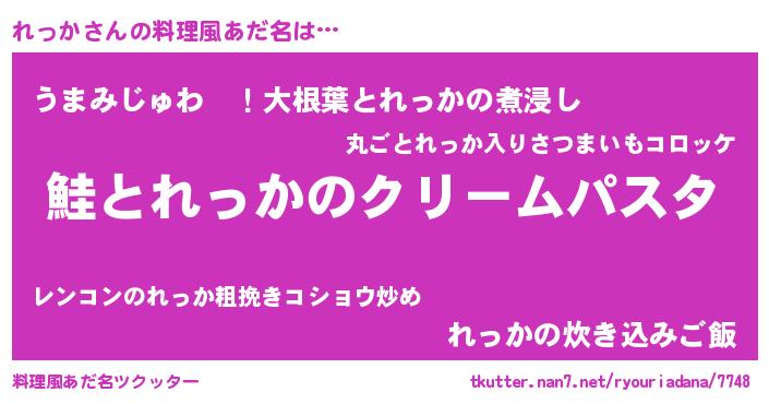 | 女子向けラノベタイトル風あだ名 | 『死神れっかの再婚』『れっかの婚約者』 |