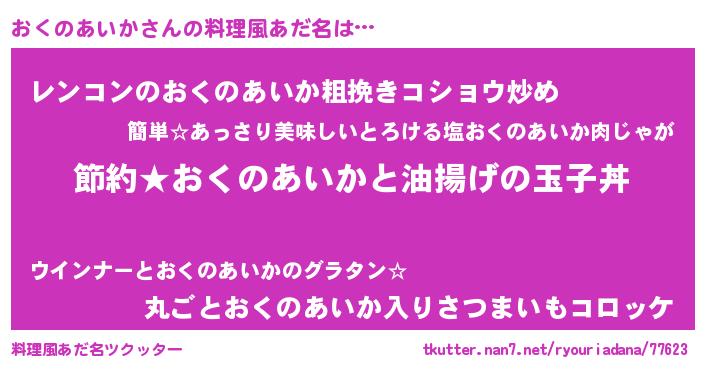 | ヘコむあだ名 | 『おくにー』『おくのあいか(笑)』 |