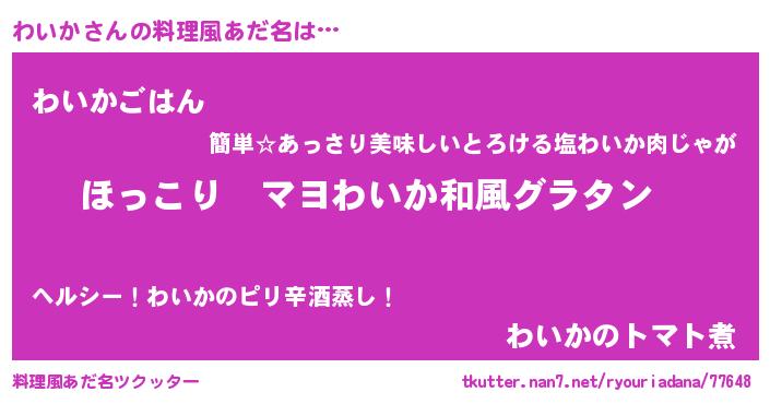 | ヘコむあだ名 | 『わいか(笑)』『わいを』『酢こんぶ』 |