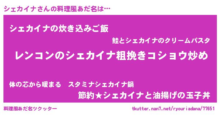 | 女子向けラノベタイトル風あだ名 | 『シェカイナなんてお断りですっ。』 |