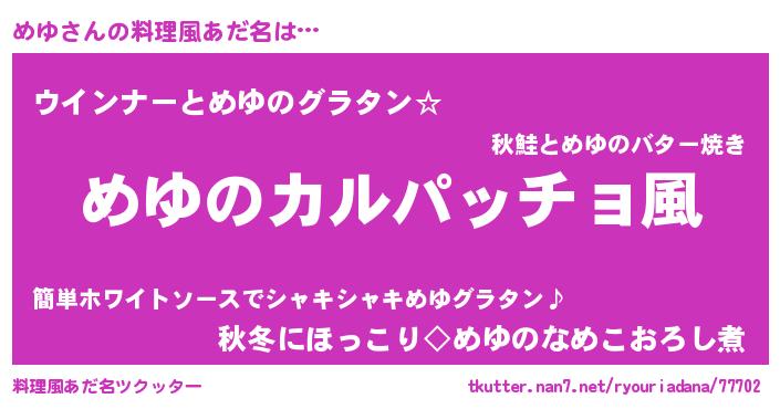 | 意味不明あだ名 | 『住所不定無職めゆ(81歳)』『永久保存めゆ』 |