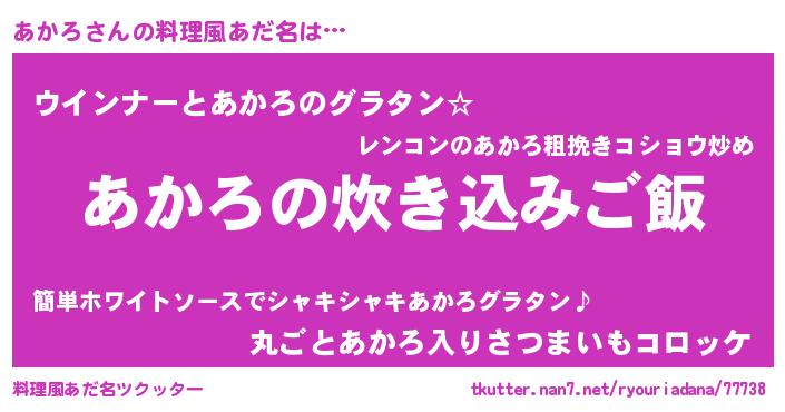 | 意味不明あだ名 | 『あかろフォーエバー』『自称あかろ』 |