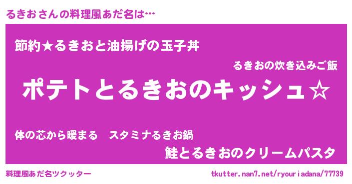 | 女子向けラノベタイトル風あだ名 | 『るきおの卵を拾いまして』 |