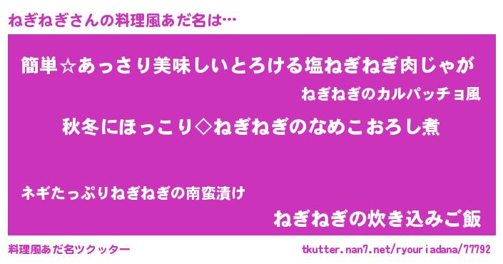 | ヘコむあだ名 | 『ねぎねぎ(遠い目)』『ねぎっふぃ~』 |