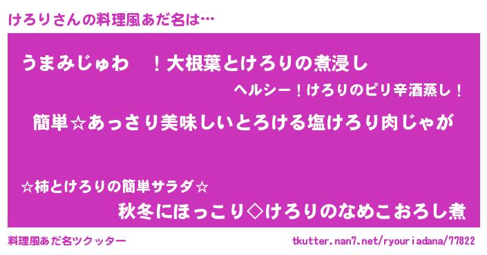 | ファンタジー風あだ名 | 『ケロディッシュ』『エターナルケロリー』 |
