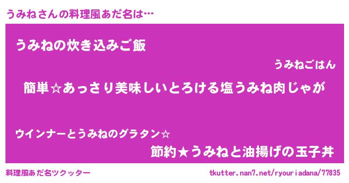 | ヘコむあだ名 | 『うみね(笑)』『うみにー』『牛乳』 |