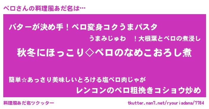 | ヒーロー風カッコイイあだ名 | 『慈愛の使者ペロ』『サイバー戦士ペロ』 |