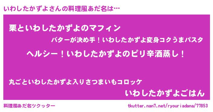 | 恥ずかしいあだ名 | 『イワシタカズヨデラックス』『いわちん』 |