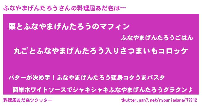 | 女子向けラノベタイトル風あだ名 | 『乙女ゲームの破滅フラグしかない悪役ふなやまげんたろうに転生してしまった…』 |