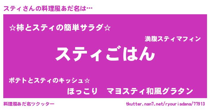 | 意味不明あだ名 | 『たけのこ科スティ属』『永久保存スティ』 |