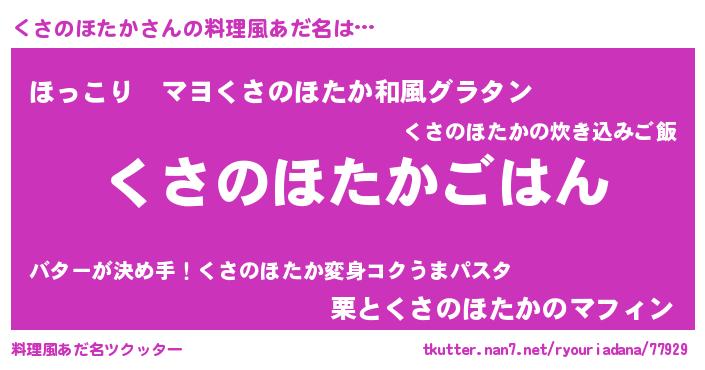 | 欧米人風あだ名 | 『トリンドルくさのほたか』 |