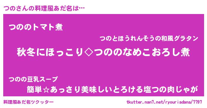 | 男性向けラノベタイトル風あだ名 | 『つのに滅ぼされるだけの簡単なお仕事です』 |