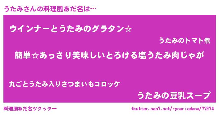 | ヘコむあだ名 | 『うたみ(苦笑)』『なまこ酢』 |