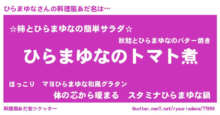 | 胡散臭い通販商品みたいなあだ名 | 『100人中100人が認めたマグネット磁石…その名も「ひらまゆな」』 |