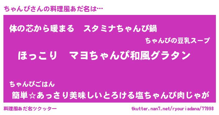 | ヘコむあだ名 | 『レバニラ』『ちゃんぴ(小並感)』 |