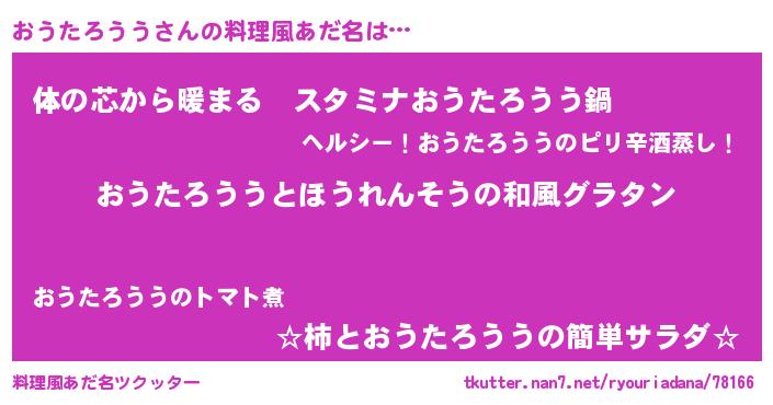 | ヘコむあだ名 | 『なまこ酢』『おうたろうう(笑)』 |