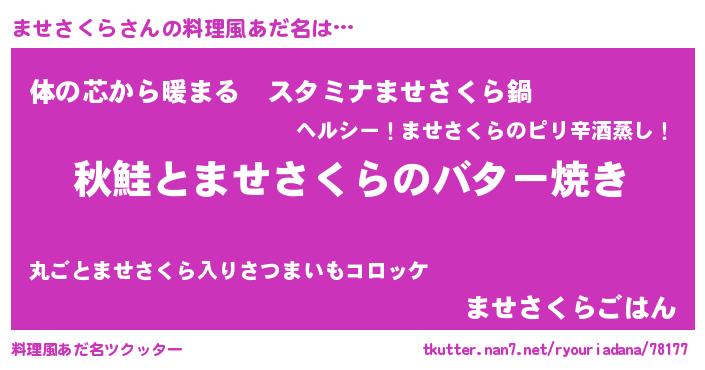 | 胡散臭い通販商品みたいなあだ名 | 『来世でも幸せになれる健康食品…その名も「ませさくら」』 |