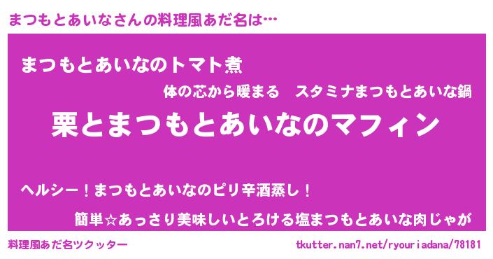 | ヘコむあだ名 | 『まつもとあいな(笑)』『豆乳』 |