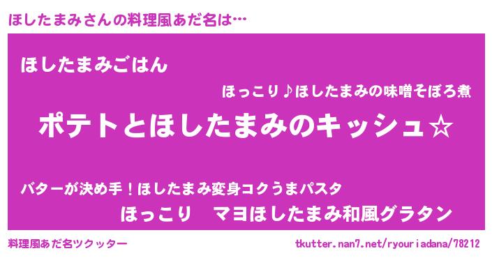 | 女子向けラノベタイトル風あだ名 | 『ほしたまみの卵を拾いまして』 |