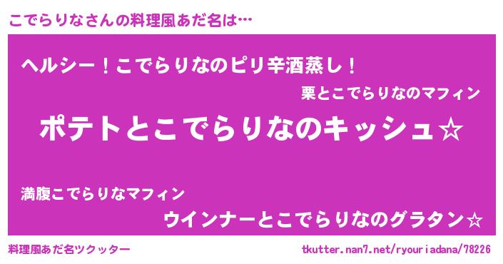 | ヘコむあだ名 | 『こでを』『酢こんぶ』『こでにゅー』 |