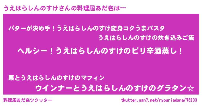 | 胡散臭い通販商品みたいなあだ名 | 『テレビで話題の高麗人参…その名も「うえはらしんのすけ」』 |