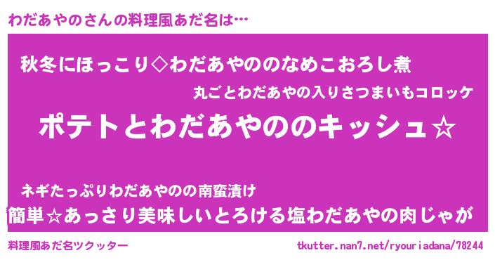 | ヘコむあだ名 | 『わだを』『わだあやの(笑)』 |