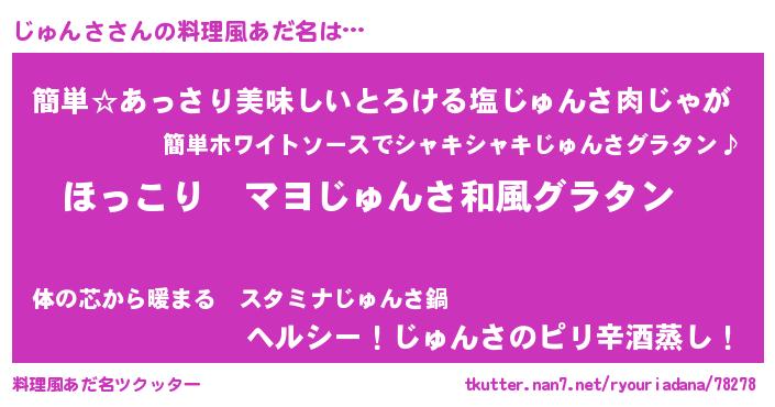 | 男性向けラノベタイトル風あだ名 | 『この素晴らしい世界にじゅんさを!』 |