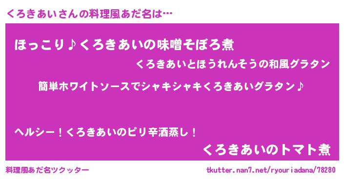| 胡散臭い通販商品みたいなあだ名 | 『全米が絶賛したサプリメント…その名も「くろきあい」』 |