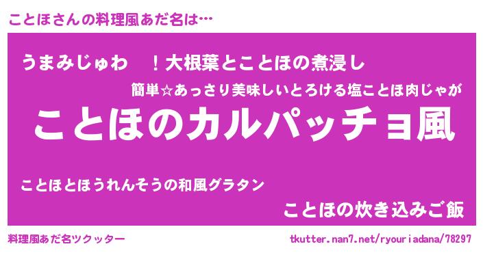 | ヒーロー風カッコイイあだ名 | 『仮面コトダー』『ウルトラことほマン』 |
